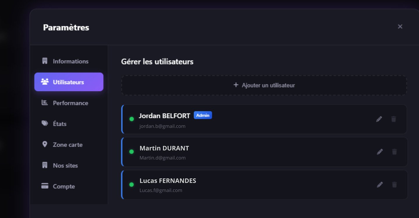 Ajoutez autant de commerciaux que nécessaire, chacun avec son accès personnel.
