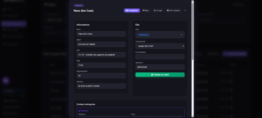 Chaque entreprise dispose d’un accès direct à sa fiche Google Maps pour récupérer les informations de contact en un clic.