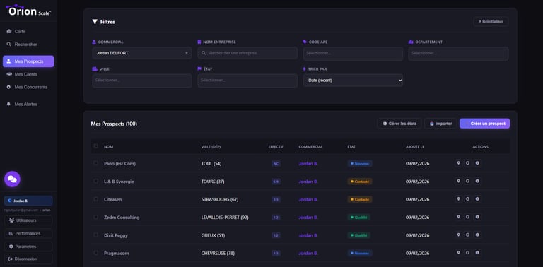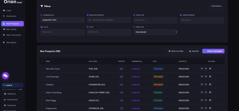 « Avant d'utiliser Orion Scale, trouver des entreprises du bon secteur, dans la bonne zone géographique, avec des contacts exploitables, nous prenait des heures. Aujourd’hui, tout est centralisé. On génère rapidement de gros volumes de prospects ciblés et on peut enfin se concentrer sur la vente. »